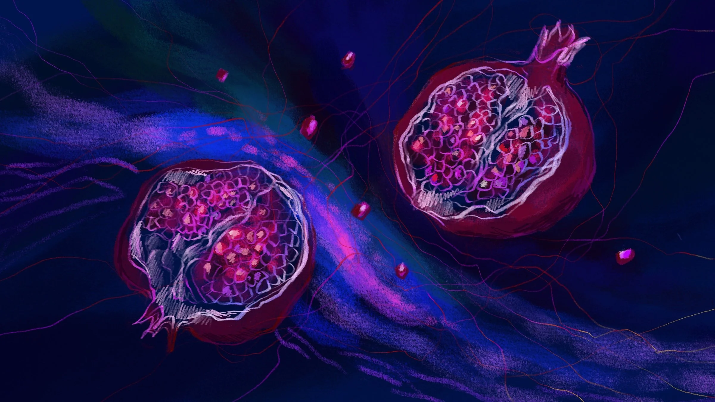 Not only does this fruit entice, but it also cuts, shreds, divides – the self from the other, the mother from the child, the spring from the winter, the world and the underworld. It is a symbol of the otherworld.