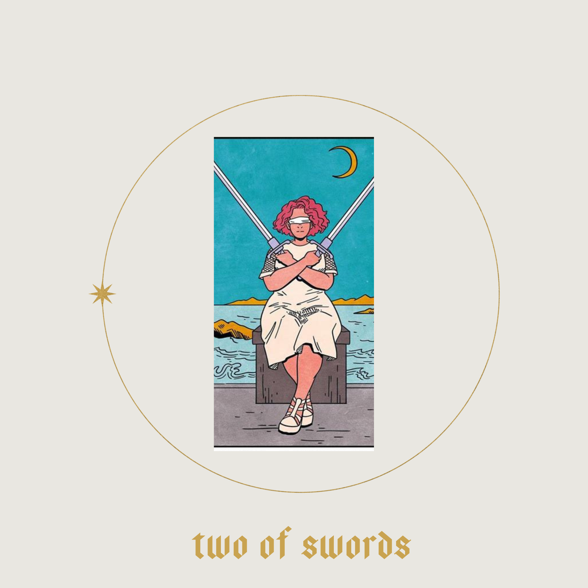 ‘When we think back to the woman in the Two of Swords, she’s sitting calmly and appears to be contemplating something. Much like a cautious artist, she carefully considers her next move before approaching her canvas, allowing her instincts to guide the way.’
